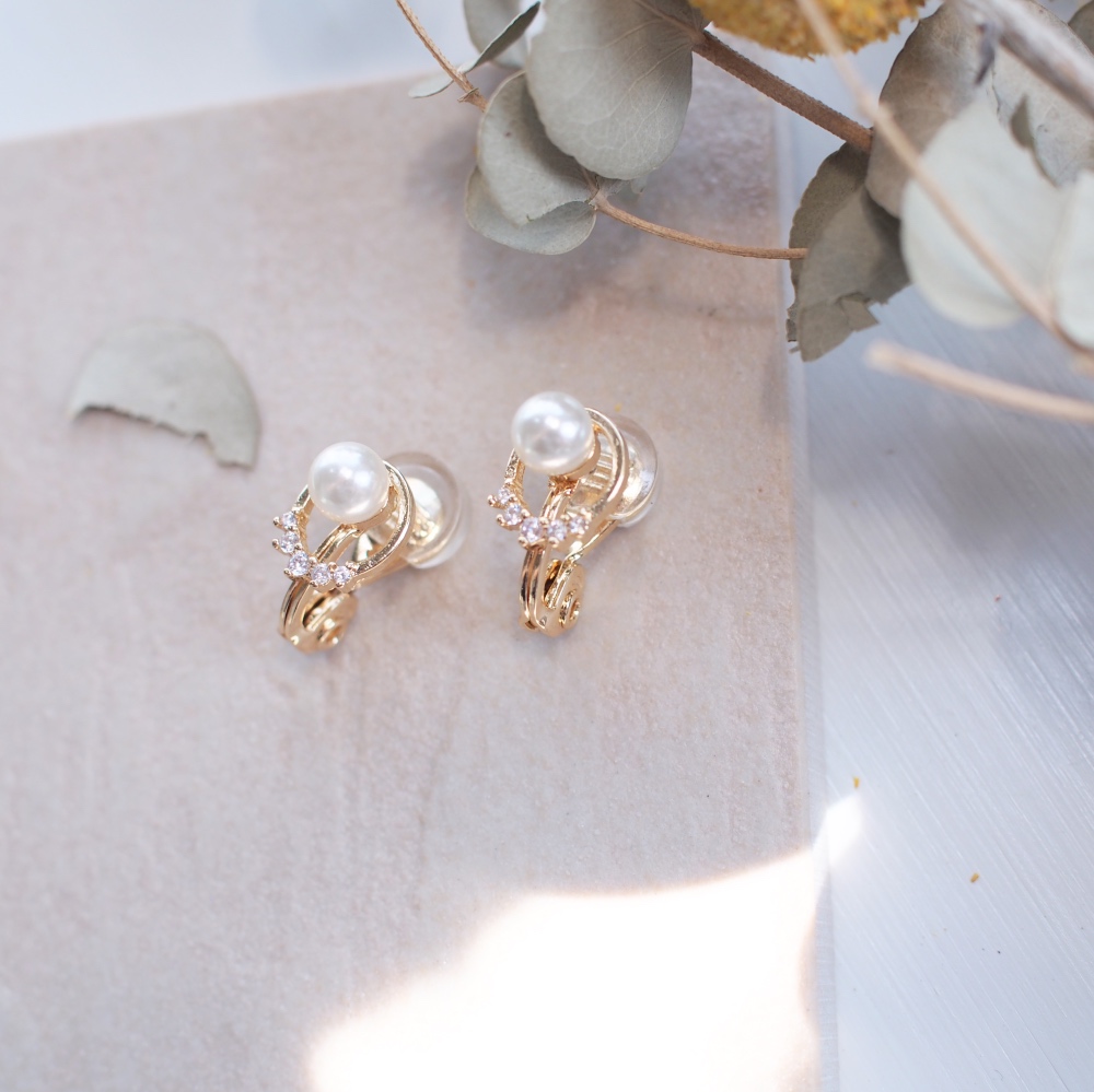 ミニパールがシンプルなイヤリングが登場!女性らしい印象で目立ちすぎないので様々なオケージョンで対応してくれます。 耳が小さく、大ぶりなイヤリングが着けられないという方にもお勧めです。ずれにくい樹脂キャッチ付きです。