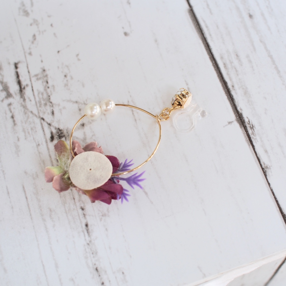 【フェルピア】フラワーチェーン樹脂イヤリングD