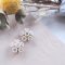 小さなパールあつまった花びらのお花が可愛いイヤリングです。 ずれにくい樹脂キャッチ付きです。