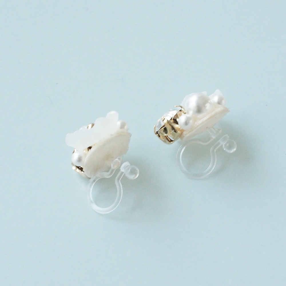 【Felpia(フェルピア)樹脂イヤリング・金属アレルギーイヤリング】フラワーとパールのガーリー樹脂イヤリング |金属アレルギーでも大丈夫ピアス&イヤリングの通販